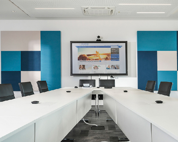 A professionally designed video conferencing room integrates advanced audio, video, and control technologies to create a seamless meeting experience that allow teams to collaborate effectively regardless of location